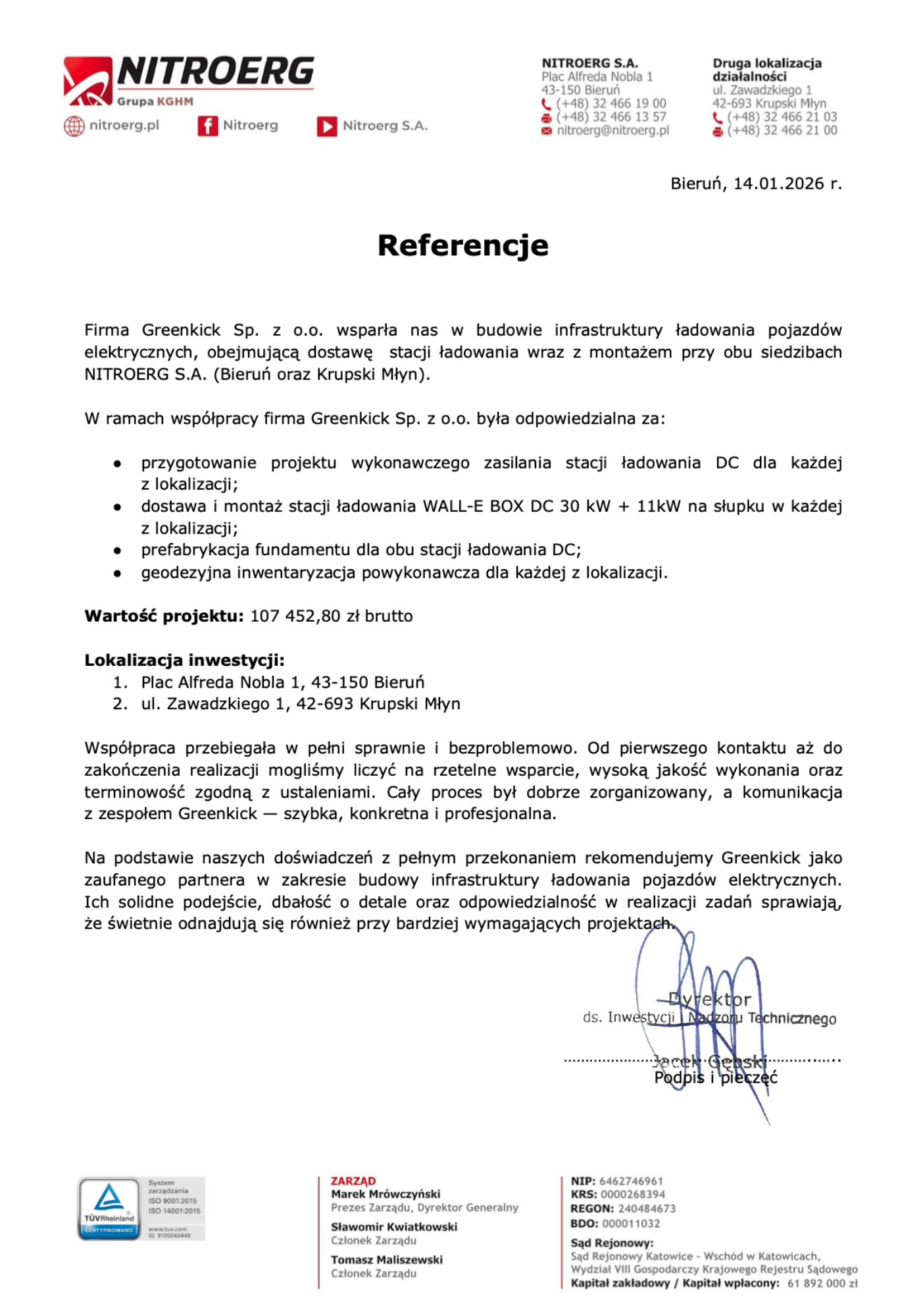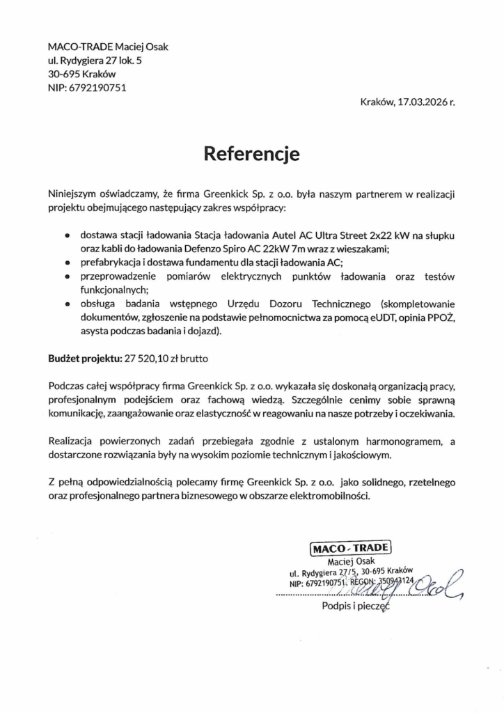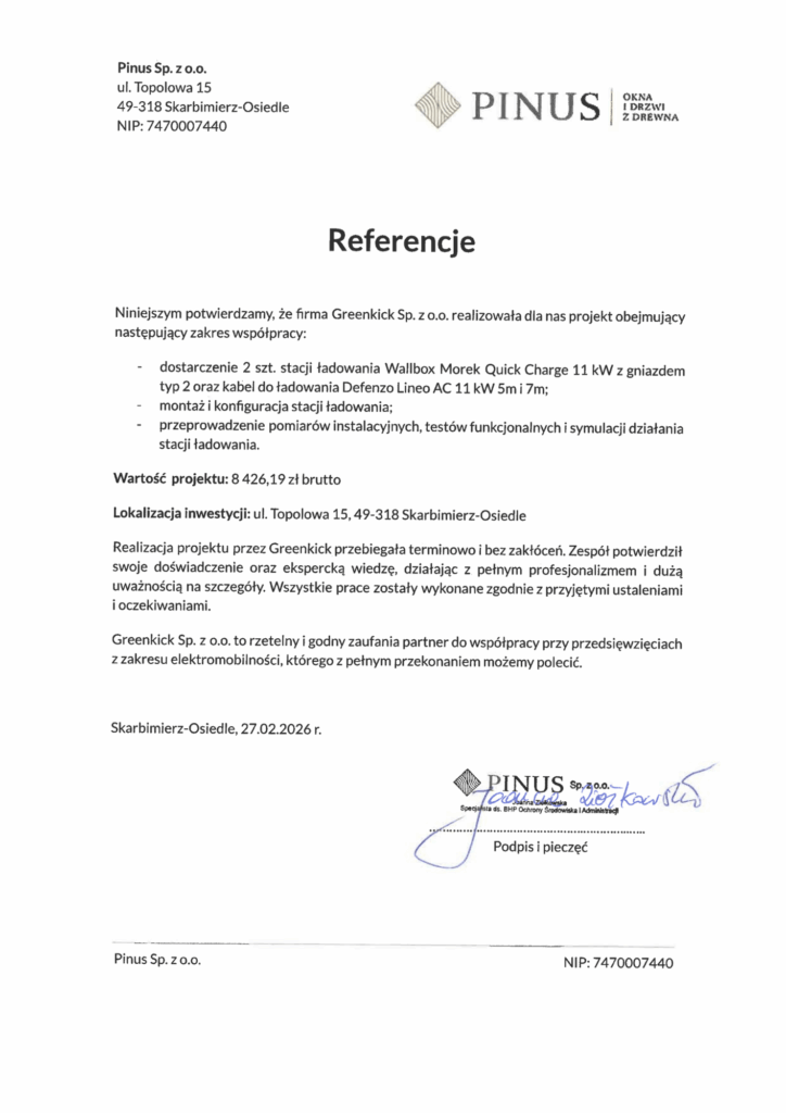 Przejdź dalej i zobacz efekty naszej pracy oraz referencje i opinie naszych klientów. W Greenkick napędzamy ekologię poprzez doradztwo najlepszych rozwiązań – dostarczamy, montujemy i serwisujemy stacje ładowania samochodów elektrycznych.