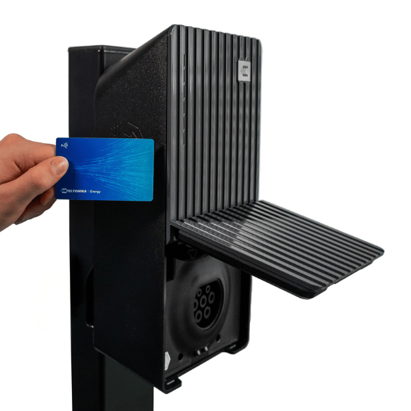 Wallbox TeltoCharge 2x22kW na słupku to inteligentna stacja ładowania samochodów elektrycznych firmy Teltonika Energy, która zapewnia najwyższą jakość produktów. To wysoce konfigurowalne i łatwe w użyciu rozwiązanie do ładowania pojazdów elektrycznych. Stacja oferuje zaawansowane i inteligentne funkcje ładowania, co pozwala zaoszczędzić czas oraz środki finansowe. Przednia obudowa została wykonana z wysokiej jakości tworzywa sztucznego, nadając jej unikalny i estetyczny wygląd. Stacje są wyposażone w kable z wtyczką typ-2, funkcję autoryzacji NFC i może być sterowana aplikacją mobilną.